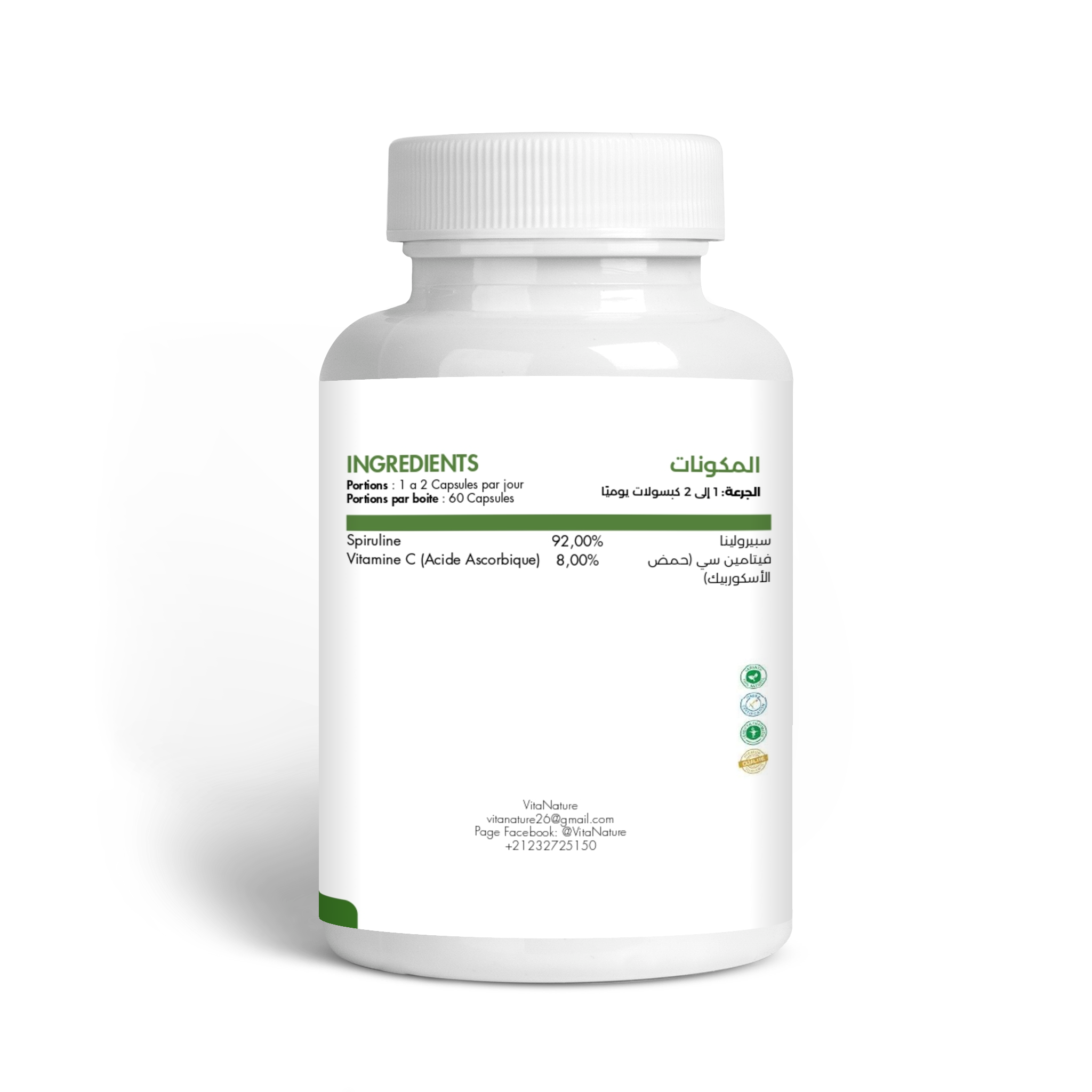 - اسم المنتج: مكمل فيتامين سي مع سبيرولينا