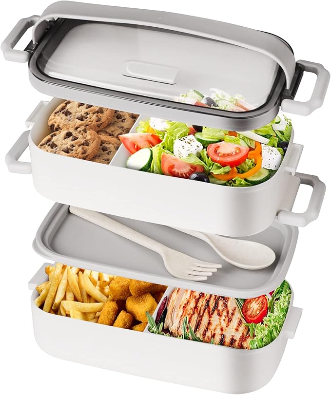 - Inclus dans le paquet : 1 boîte à lunch bento pour adulte à 2 couches, 1 petite cuillère, 1 petite fourchette dans le compartiment central de la boîte à lunch