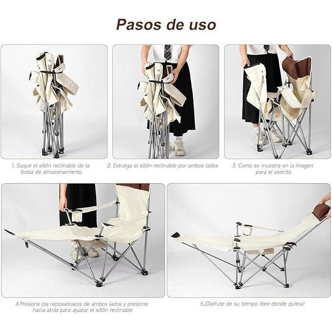Chaise de camping avec appui-tête, repose-pieds et chaise d’extérieur pliante