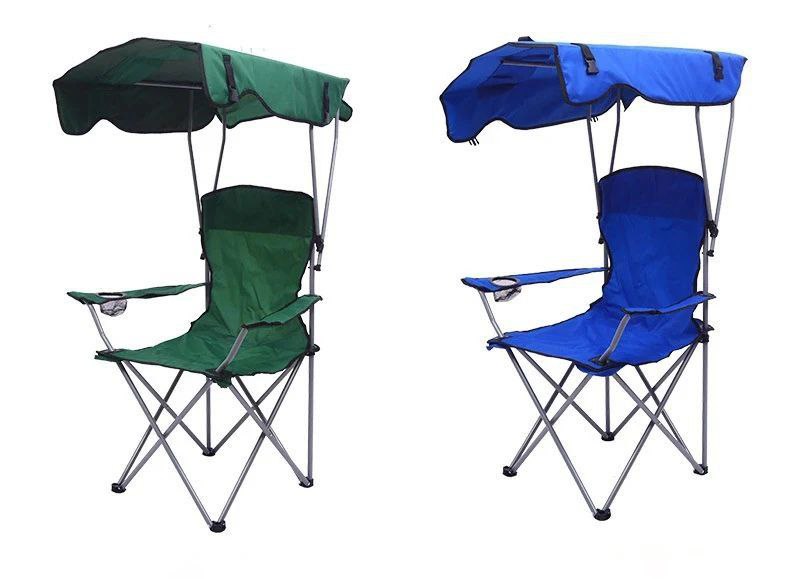 Chaise de plage avec protection solaire et auvent pliant Bleu, Vert, Beige et Vert Militaire