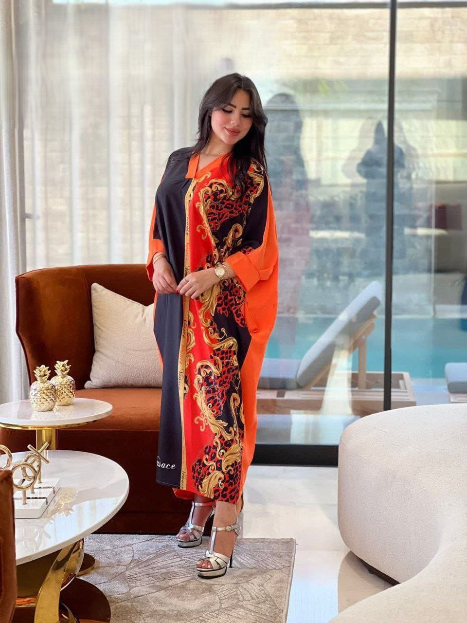 🔸 Design chic et audacieux : imprimés baroques dorés sur fond noir et rouge, avec une touche de luxe digne des grandes maisons de couture.